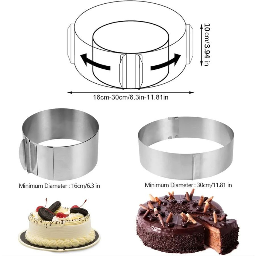 Könnyű használat: A keret egyszerűen beállítható a kívánt méretre, és stabilan tartja a tortát sütés közben.