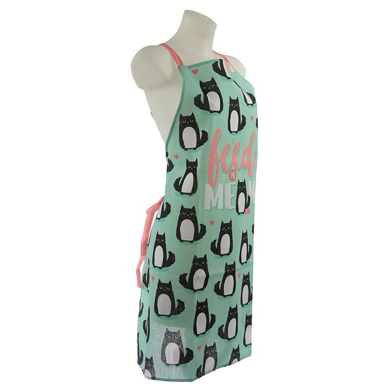 Macskás konyhai kötény otthoni, vagy professzionális konyhai felhasználásra. Főzhetsz, süthetsz, dagaszthatsz benne kedved szerint, mégpedig macskaügyességgel. Kényelmes és kellemes viselet a konyhai munkálatok közben is, ráadásul a minta miatt még divatos is. Sürögj-forogj a konyhában ebben a csodás, menő, cicás kötényben!