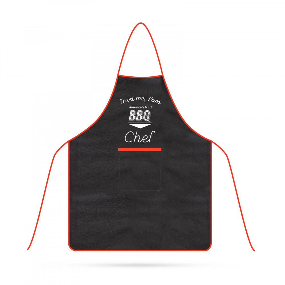 Praktikus kiegészítője a kerti sütögetésnek. Megvédi ruháját a zsírfoltoktól. Poliészter anyaga vízlepergető hatással bír. A középen lévő nagyméretű zsebben mindig magánál tudhatja a legfontosabb BBQ kellékeket.
