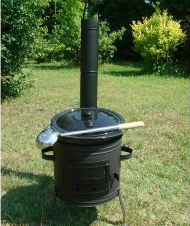 Parti üstház főzéshez, sütéshez, abáláshoz, grillezéshez. A tűz zárt térben marad, nem kell a kertben külön helyet kialakítani neki. Az oldalán található ajtón keresztül táplálhatod a benne lobogó tüzet, vagy az izzó parazsat. Használhatod grillráccsal, vagy öntöttvas tárcsával is. A belső átmérője 36 cm, így egy 10 literes bográcsot lehet beletenni. Készíthetsz benne gulyáslevest, halászlét, vagy slambucot, grillezhetsz rajta húsokat, vagy zöldségeket. Egyszerűen szétszedhető, így kényelmesen el is viheted magaddal horgászáshoz, kempingezéshez, ha befér az autóba. Hagyományos disznóölések elmaradhatatlan kelléke volt, ebben abálták a szalonnát, de itt készült a tepertő is. Tartós használatra alkalmas, matt feketére festett vaslemezből készült.