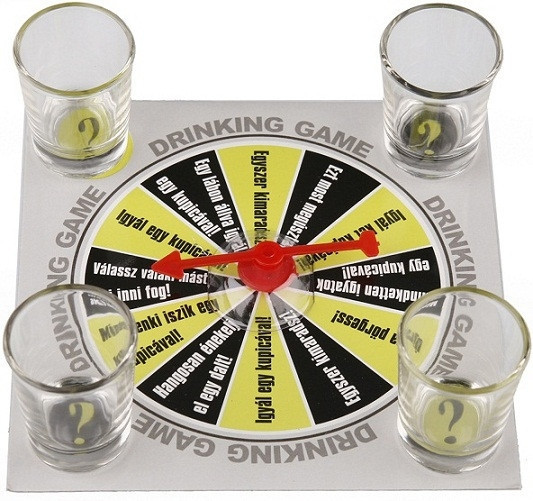 Hangulatfelelős piás szerencsekerék, ami ha előkerül, a vidámság is azonnal ott terem! Vedd elő, vagy vidd magaddal buliba és játszatok egy kicsit! Kérj mindenkinek egy felest, de pörgesse meg a kereket, hogy hogyan kell meginnia! "Énekelj hangosan!", vagy "Igyál féllábon állva!" Biztos szórakozás, jó móka! Igazi szerencsekerék a jó barátoknak, barátnőknek!