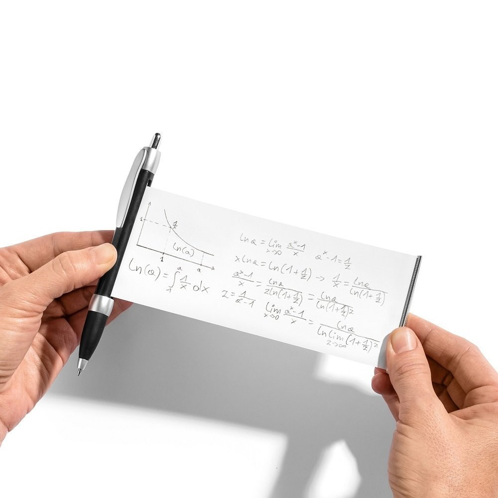 Alapvetően információk tárolására használható golyóstoll. A beépített rugós tekercs felületére elhelyezhető pl. reklám, de feljegyezhető rá mindenféle fontos információ, vicces üzenet, esetleg dolgozat puskázásához képletek, vagy a megoldásokat tartalmazó puska. A 17 cm x 6,5 cm méretű fehér tekercs felülete markerrel írva később letörölhető, de lehet rá nyomtatni, vagy kézírással is rögzíteni bármit. A tekercs a toll belsejéből teljesen kihúzható és amikor elengedjük, villámgyorsan visszacsévélődik a helyére. A papírtekercs egyszerűen cserélhető egy nyomtatott, vagy üres tekercsre. A szerelésnél arra kell ügyelni, hogy betekert állapotban maximum 1-2 fordulatot elegendő rajta visszatekerni, ugyanis különben a rugós feszítő túlcsavarodhat.