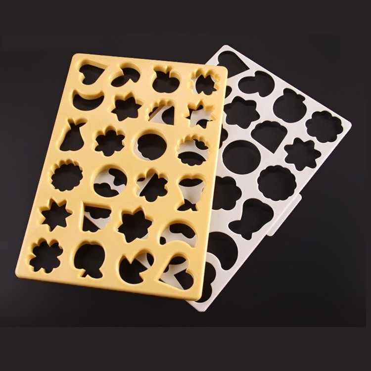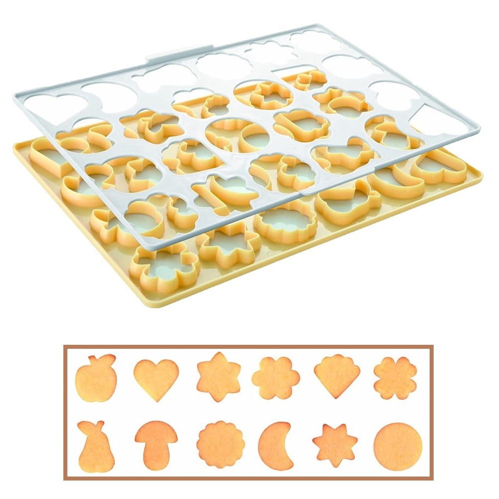 Tradicionális tésztakiszúró rács alap linzerformákkal. Gyümölcsök, gombák, csillag, hold, szív, virág, vagy szerencselóhere forma. Segítségével egyszerre 24 db süteményformát vághatsz kia egyszerre! Nem kell sok időt fordítani a tökéletes formázáshoz, egy nyomás és a kiszúrórács segítségével azonnal meglesz a teljes tepsibe a megfelelő mennyiségű forma. Egyszerű és gyors a sütemények elkészítése! Nyújtsd ki a tésztát a megfelelő méretűre egy sütőpapíron, te bele a tepsibe, majd a kiszúró formát nyomd bele és vágd ki tökéletesen formázott süteményeket! A forma az ideális sütési távolságot is beállítja, így semmi dolgod nem marad, csak tedd be a sütőbe és süsd készre őket!