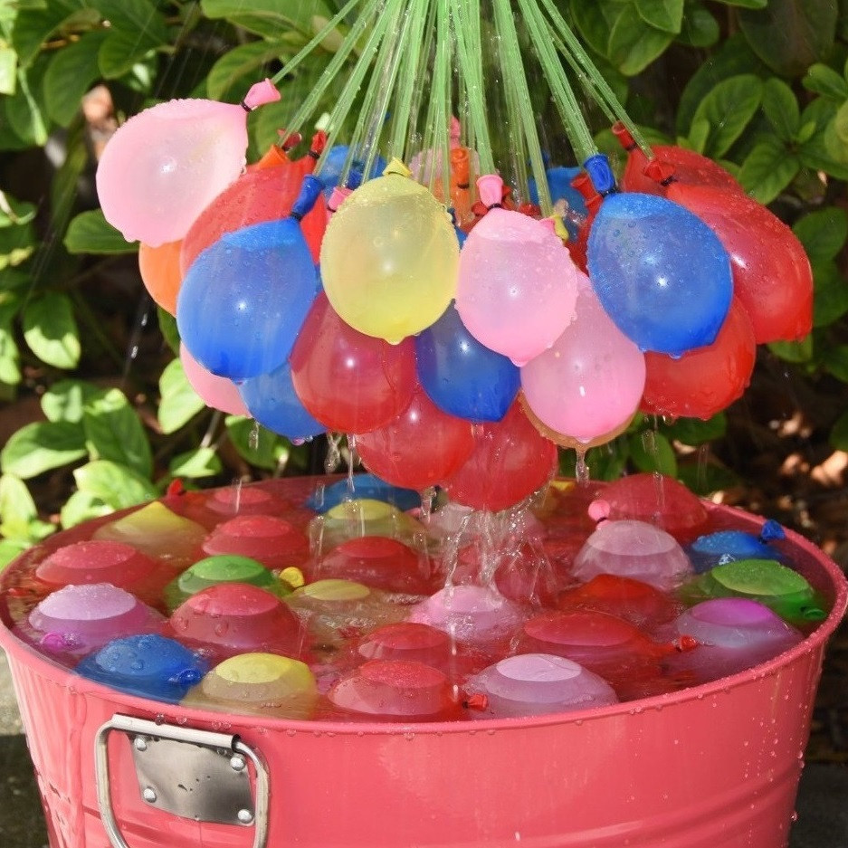 Lufis vízibomba készlet nyári strandcsatákhoz, több mint 100 db színes lufival, amit ráadásul akár 1 perc alatt fel lehet tölteni! Ez a vízbomba szett az egész családot beindítja, a legmelegebb napokon is! A szett 3 csokor lufit tartalmaz, amelyeken egyenként 37 db lufit találsz vegyes színekben. Különlegessége, hogy bármilyen csapot, vagy kerti slagot rájuk csatlakoztathatsz, majd mindösszesen annyi a dolgod, hogy megvárd, míg pillanatok alatt akár a 111 lufid feltöltődik! Ennek köszönhetően seregnyi lufi bombád lesz egyszerre, amelyek elől nincs menekvés! Indulhat is a harc! Nem kell egyenként elkötnöd, azonnal használatra készek lesznek, ugyanis önzáró mind. Legyen izgalmas a nyaralás! Lepd meg vele nyaraláskor a családot és vívjatok bombacsatát a vízparton, vagy a nyaraló kertjében!